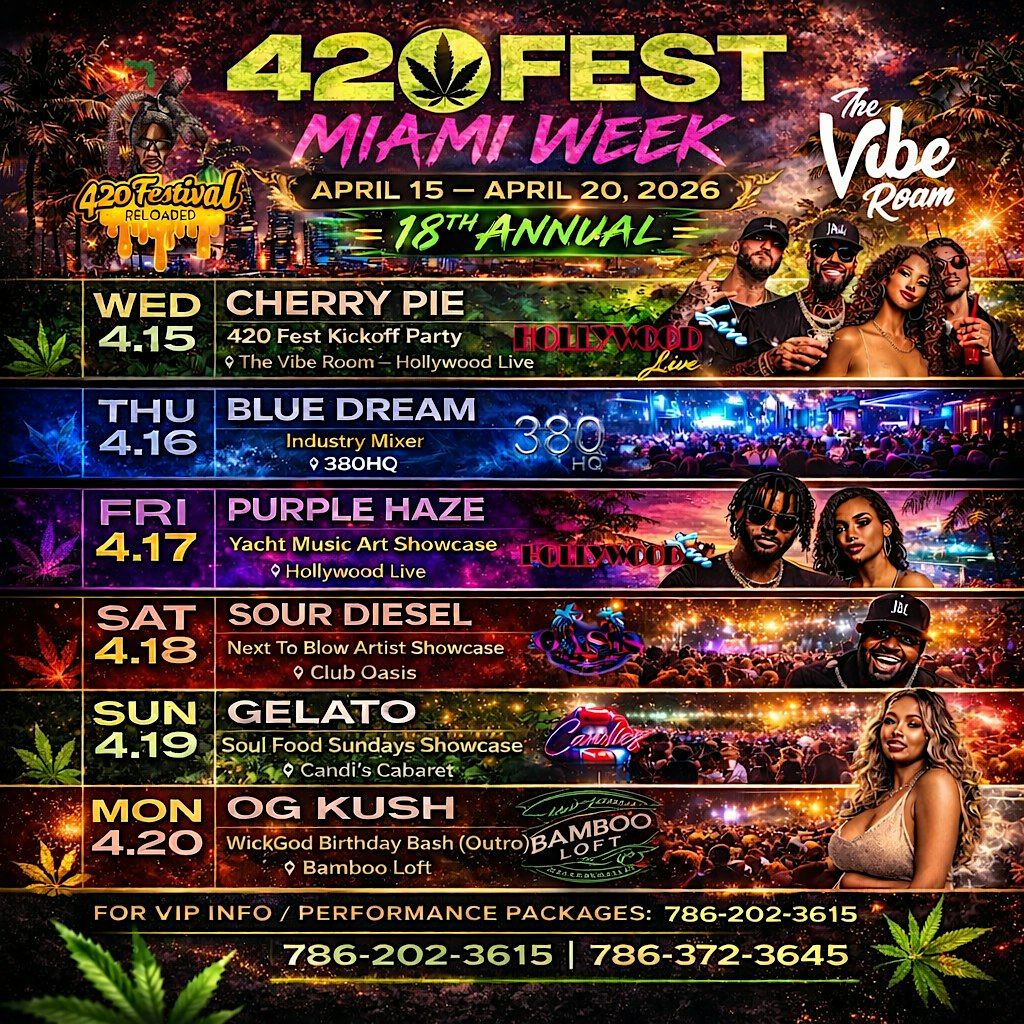 Get ready to celebrate the green vibes at the biggest 420 parties of the year The 18th Annual @420festmiami & WickGod Big Gday Bash !
