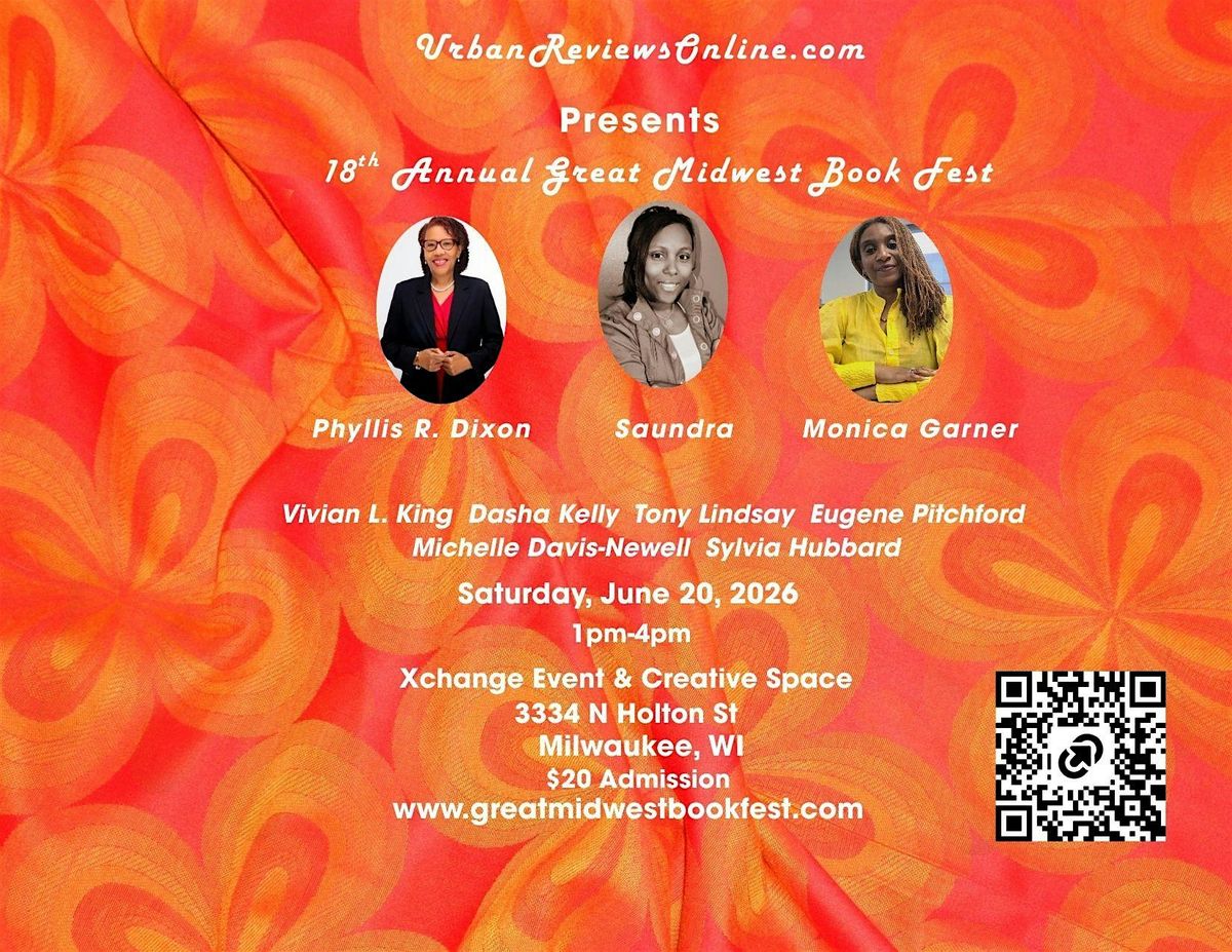 The 18th Annual Great Midwest Book Fest is a three-hour book fair that features African American authors and is open to the public with a $20 admission. Children are free. The 18th Annual Great Midwest Book Fest will be held on Saturday, June 20, 2026 from 1-4pm at Xchange Event & Creative Space, 3334 N. Holton St, Milwaukee, WI. The event will start with the authors giving a brief introduction of themselves followed by a short Q&A from the attendees.