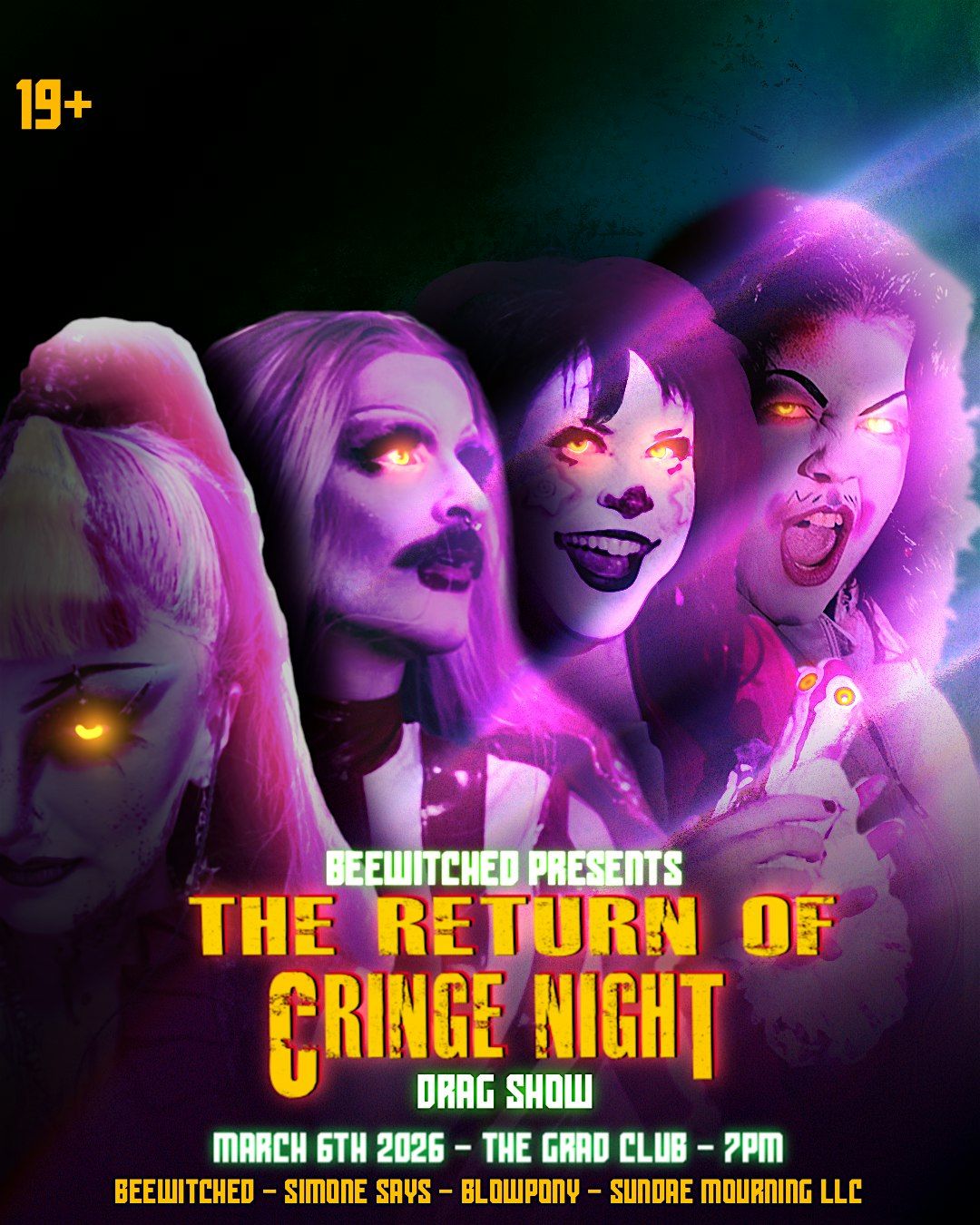 BeeWitched's Cringe Night Drag Show is BACK by popular demand! This fresh crew is ready to put on a drag show full of cringey call backs, unique numbers and permission to be fully weird. Cringe Night is a both a celebration and recollection of things that may give you psychic damage or insane nostalgia. Come make friends and stay for the ultra talented diverse cast!!
