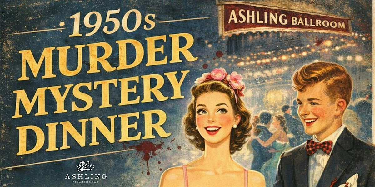 Join us at Ashling Kitchen & Bar for an unforgettable 1950s Prom-Themed M**der Mystery Dinner, where vintage glamour meets dark intrigue. Think pastel tulle gowns, polished loafers, slicked-back hair, and a ballroom buzzing with secrets just beneath the surface. On the outside, it’s a picture-perfect prom night. Behind the smiles? Scandal, jealousy, and a crime waiting to unfold.