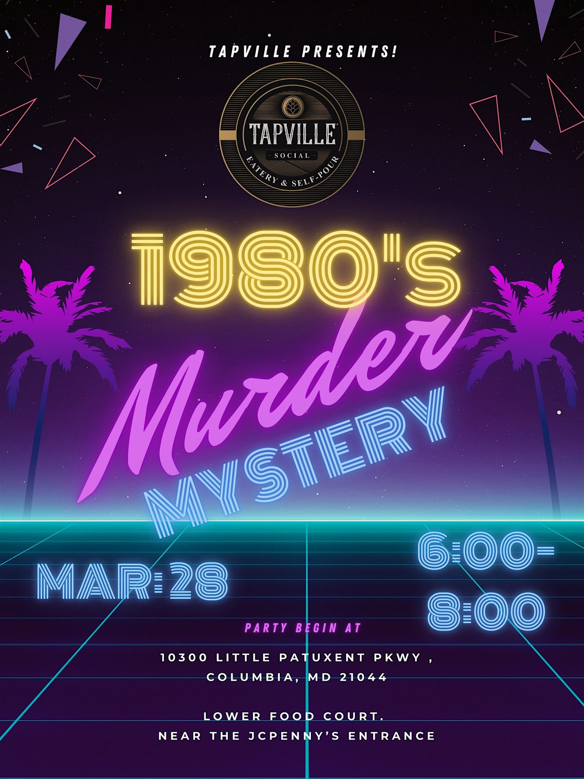 Get ready to channel your inner detective and dive into an epic in-person adventure set in the totally tubular 1980's. Expect neon vibes, quirky characters, and a mysterious whodunit that'll keep you guessing all night long. Grab your friends, a cocktail, and don your best retro outfit, and let’s solve this crime together!