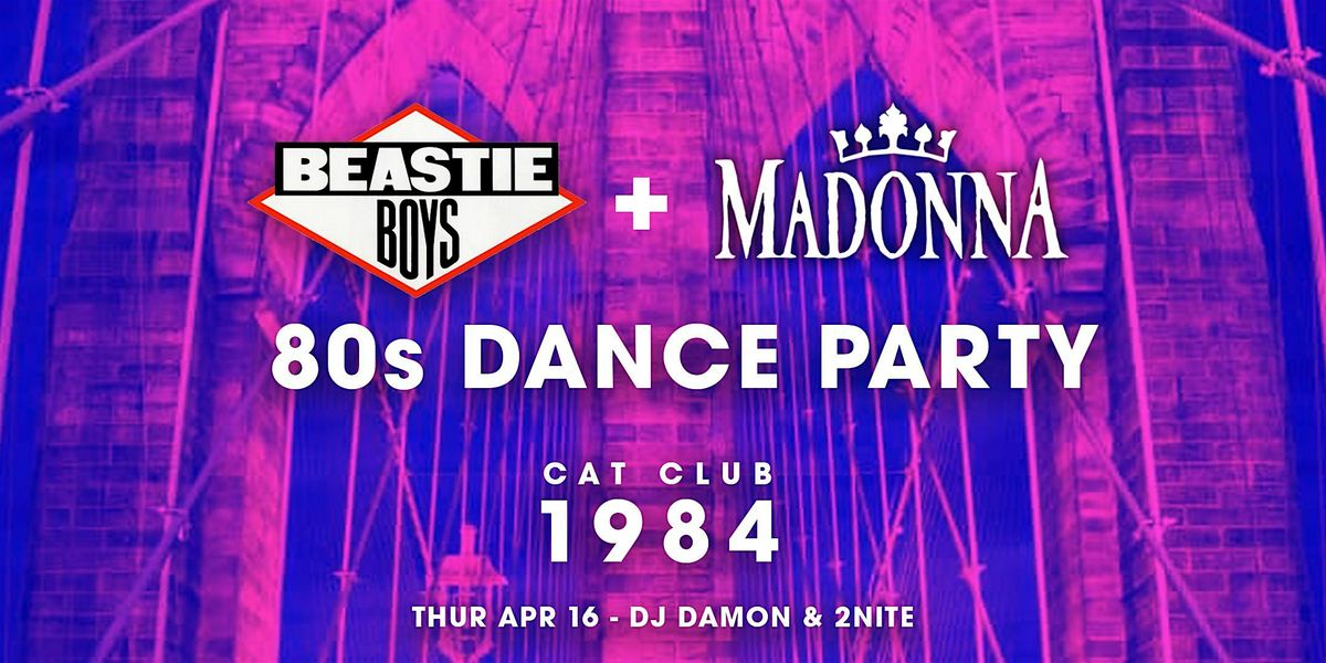 Free with Eventbrite on Thursdays! We are great for hosting Birthdays and big parties. We play the best music, come on down, it's free to get in.Join in our 80s nightclubbing fun with our Beastie Boys vs Madonna and all 80s party at 1984 at the Cat Club, it's all the best dancing with amazing music every Thursday night in San Francisco, this Thursday, April 16th, 2025!The Dancing starts at 9pm as DJ Damon (Club Gossip) & DJ 2nite (Club Harder Better) make you sweat and groove to all the great 80s bangers and classic new wave everyone loves. Come down and relax with friends. Every loves The Go-Go's and Duran Duran? AM I RIGHT?!!? No Cover on Thursdays, Thursday is the new Friday,