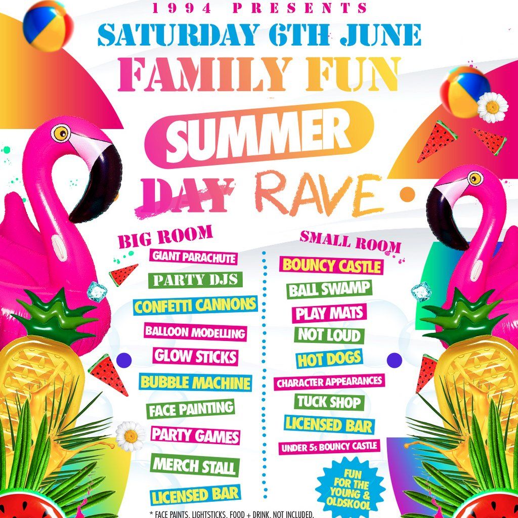 We are celebrating the start of the summer. Youngsters bring all your friends because 1994 Family Fun Day is having another all ages, massive Rave up.Music Genres : Trance, Old Skool, Pop, 1990s, 2000s