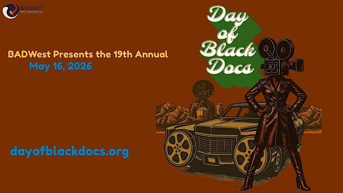 A one-day film festival celebrating Black documentary filmmakers, Saturday, May 16th in LA. DAY OF BLACK DOCS, the annual fundraising event for BADWest is back for its 19th year take place on Saturday, May 16th from 12:00 p.m. until 6:30 p.m. at the American Film Institute (AFI), Mark Goodson Theater, 2021 N. Western Avenue, Los Angeles, CA 90027. The esteemed journalist and critic Tim Cogshell is the moderator.