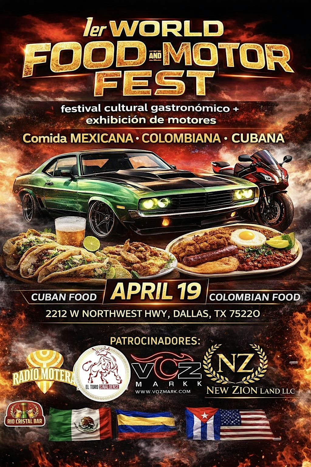 restaurantes de Cuba, México y Colombia, compiten en un día genial para que los comensales decidan cual es el plato mas rico del evento en comida internacional, Habrá motores, Autos, motocicletas de alto cilindraje, presentaciones culturales de los diferentes países participantes y con la mejor musica del momento con DJ , Rock, no te pierdas este espectacular evento que te trae EL TORO SINALOENSE, VOZMARK y RADIOMOTERA.