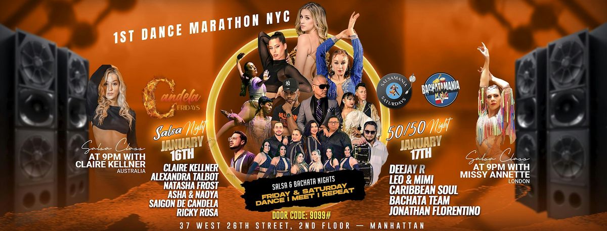 Candela Fridays, Salsamania, and Bachatamania come together to present our first-ever NYC Dance Marathon β a full weekend dedicated to salsa, bachata, classes, shows, and pure dance energy in the heart of Manhattan.