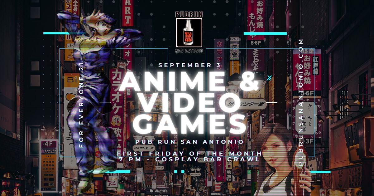 Pub Run San Antonio - First Friday bar crawl! Theme: Anime & Video Games! Come dressed up in cosplay! Several bars, no cover charge!About this Event