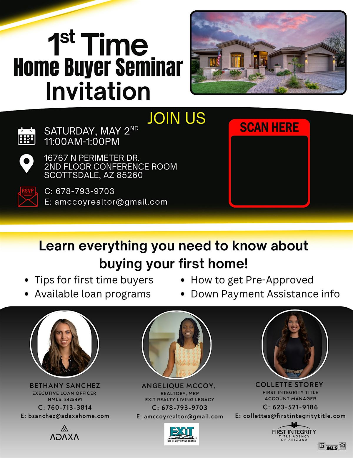 Not sure where to start with buying your first home? This free seminar is designed for Scottsdale/Phoenix-area renters, young professionals, and young families who want clear, beginner-friendly guidance in a no-pressure environment.