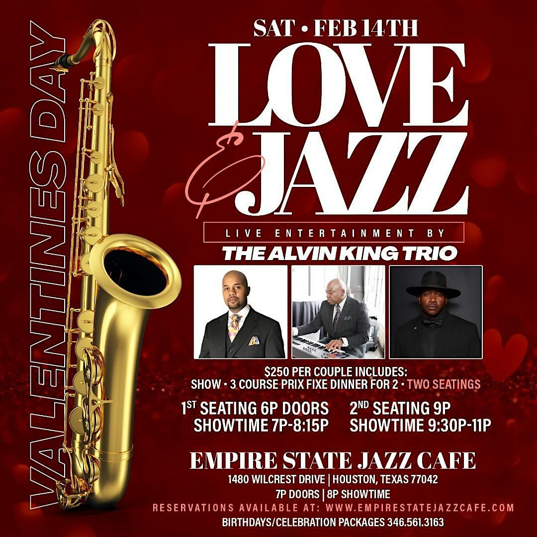 Come join us for a night filled with love and jazz at the Empire State Jazz Cafe! The talented the Alvin King Trio will be serenading us with their smooth tunes. Grab your special someone or round up your friends for a memorable evening. Let the music transport you to a place of pure bliss. Don't miss out on this magical night!