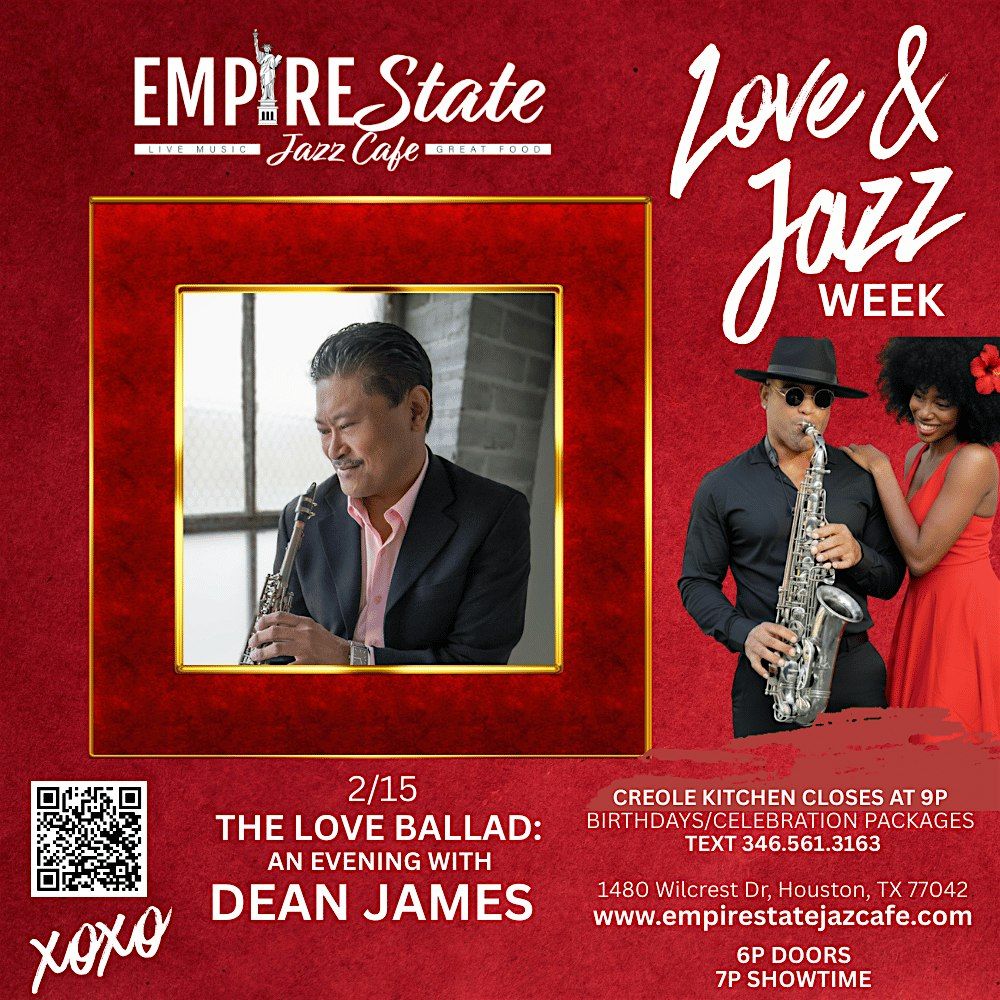 Welcome to the Empire State Jazz Cafe for a special evening on February 15, 2026 at Doors 6:00 PM | Showtime 7:00 PM(Central Time)! Join us for The Love Ballad: An Evening With Dean James.