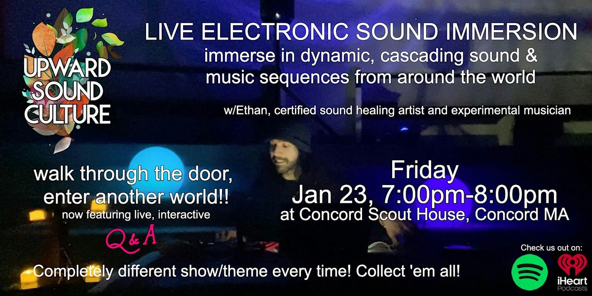 This is a 1 hour, immersive, dynamic sound oddysey from 7-8 pm at the Concord Scout House, Concord MA.
