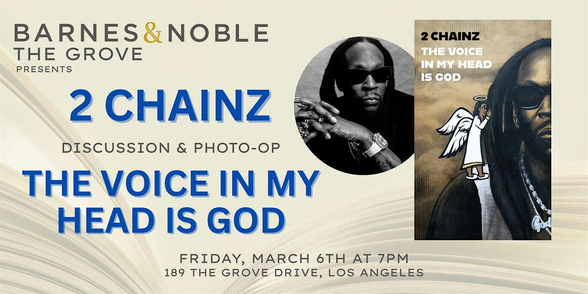 Join on March 6, 2026, at 7:00 pm as we welcome Grammy Award–winning artist to the store to discuss his memoir, . 2 Chainz tells the story of how he walked away from the trap and found his purpose: not by fame or fear, but by faith. With his unmistakable voice and unflinching honesty, he reflects on the hardest moments of his life and the quiet revelations that shaped him. From the spiritual alarms he couldn’t ignore to the mentors who showed up at the right time, he explores how his music and verses poured out when he finally listened to the voice that had been there all along.