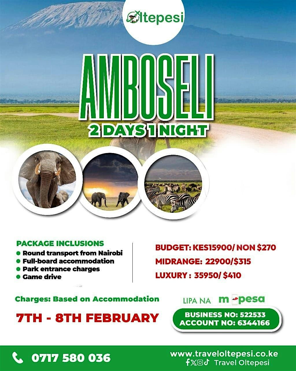 Ready to Book? Lipa Na M-PesaBusiness No: 522533 Account No: 6344166 Call/WhatsApp: 0717 580 036