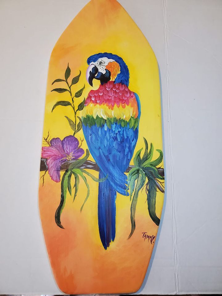 Utilizing acrylic paint you will create this beautiful tropical surfboard. $65 Grab your bestie and favorite beverage and get your art on!! Call 9047047449 and sign up today!