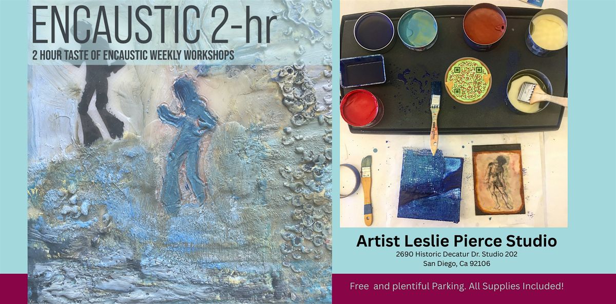 FREE AND EASY PARKING. Group Private Workshops Available. Want a longer Encaustic Workshop? See “Captivating Encaustic” Weekend Workshops HERE.