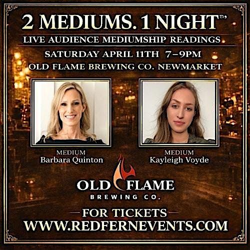 Come spend a great evening at Old Flame Brewing Co (140 Main St South) Newmarket, Saturday April 11th from 7-9pm, with local Mediums Barbara Quinton and Kayleigh Voyde.