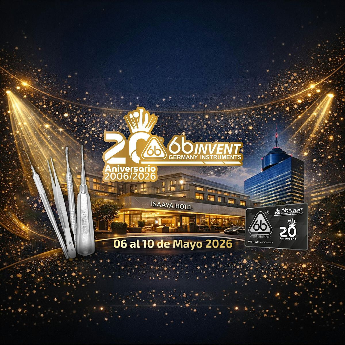 En el 20 Aniversario de 6b Invent Germany podrás comprar todo lo necesario para equipar tu consultorio a los mejores precios. Encuéntranos frente al WTC, en el hotel Isaaya Boutique y obtén un 20% de descuento al presentar tu tarjeta 6b Plus.