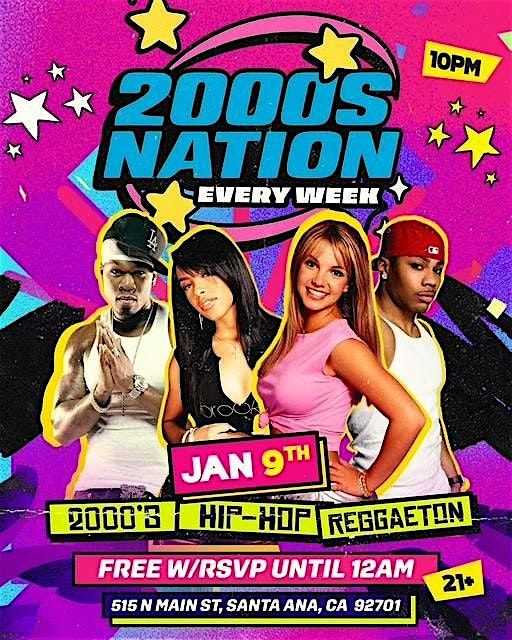Get ready for the ultimate 2000s throwback as 2000s Nation takes over Orange County on Friday, January 9th! 🔥 Dance all night to your favorite hits from the 2000s and relive the era that defined iconic music, bold fashion, and unforgettable vibes.