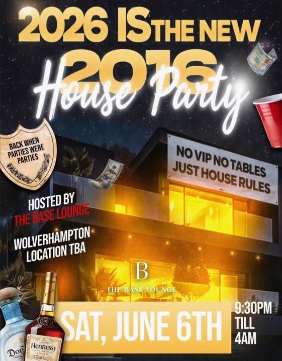 THE BASELOUNGE PRESENTS2026 IS THE 2016 HOUSE PARTYRun it back to the golden era of house parties.Where 2026 meets 2016 — the music, the vibes, the energy.