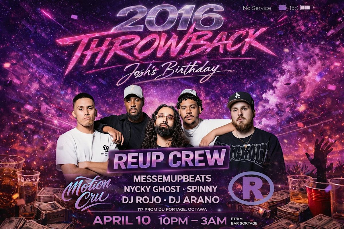 2016 Throwback Party — April 10 at Bar Solena. Reup Crew live. Josh’s birthday. 10PM–3AM. Limited tickets. Don’t miss out.