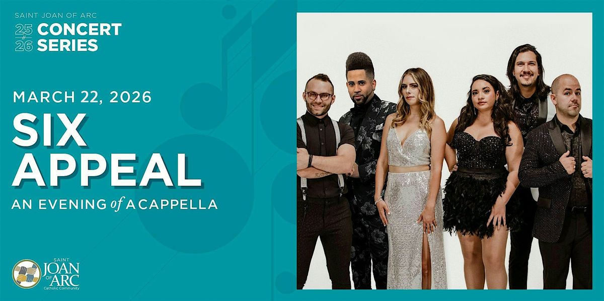March 22, 2026 // SIX APPEAL - Six Appeal's performances have captivated audiences of all ages in almost every state and a growing number of diverse countries around the world, leaving a trail of harmony in their wake. They are a world-class vocal ensemble whose vibrant energy and dynamic blend bring a cappella to the forefront. They are two-time global champions of the genre after competing against nearly 200 groups from 26 different countries!