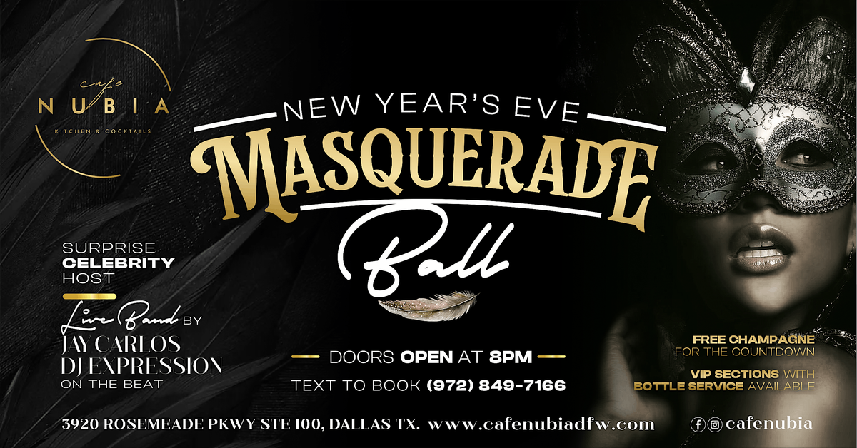 New Year's Eve Masquerade Party at Cafe Nubia! Ring in the new year with mystery, glamour, and excitement!About this Event
