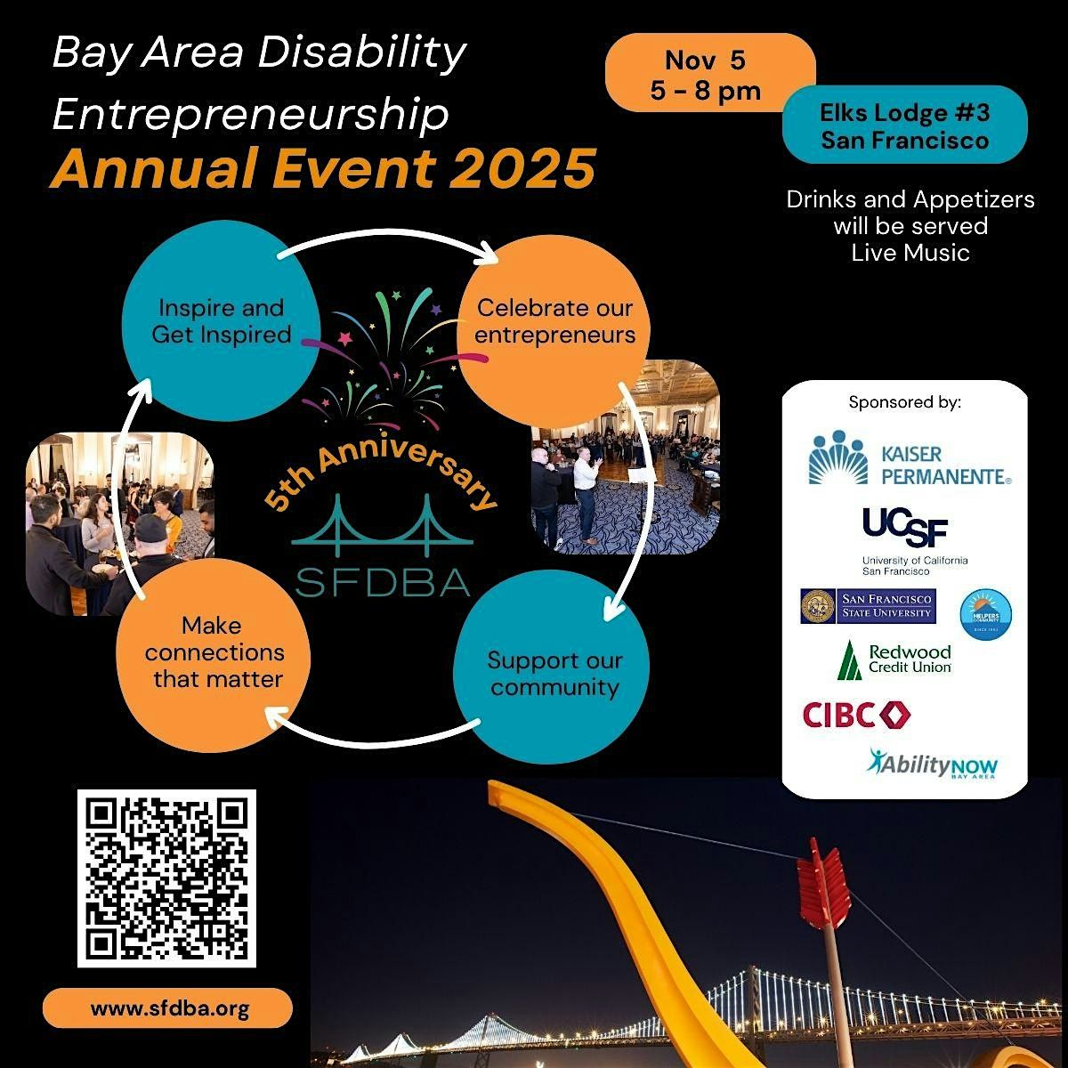 Welcome to the 2025 SFDBA Bay Area Disability Entrepreneurship Event! Join us at the San Francisco Elks Lodge #3 for a day filled with inspiration, networking, and opportunities. Whether you're a seasoned entrepreneur or just starting out, this event is designed to empower individuals with disabilities to succeed in the business world. Don't miss out on engaging panels, interactive workshops, and valuable resources to help you thrive in your entrepreneurial journey. Connect with like-minded individuals and learn from experts in the field. Get ready to take your business to the next level at this exciting event!