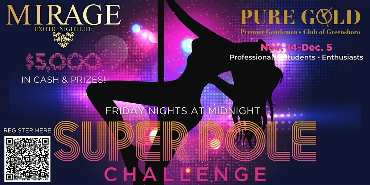 This yearβs competition will span four electrifying Fridays, alternating between Pure Gold Premier Gentlemen's Club of Greensboro and Mirage Exotic Nightlife, leading up to an unforgettable Final Showdown at Mirage.