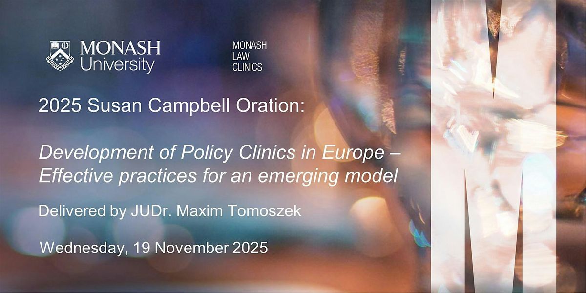 ⏰ Time: 6 pm – 7 pm AEST (registration from 5.30 pm)-Followed by light refreshments 📍 Venue: Monash University Law Chambers, 555 Lonsdale Street, Melbourne