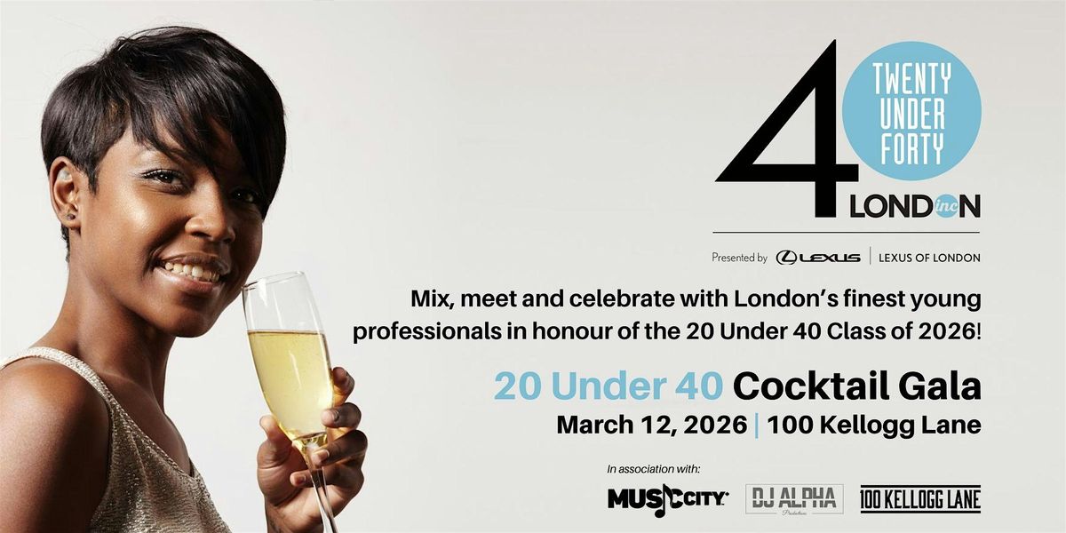 Join the 2026 20 Under 40 Recipients, 20 Under 40 Alumni and a who's who of London's business community for an evening of social networking and celebration of the city's finest young professionals.