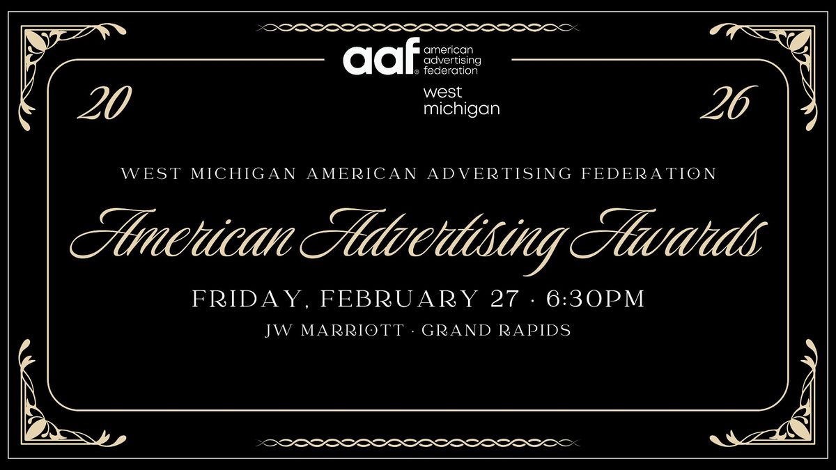 AAF West Michigan is proud to host the 2026 American Advertising Awards. Join us as we celebrate the creative spirit of excellence in our local community.