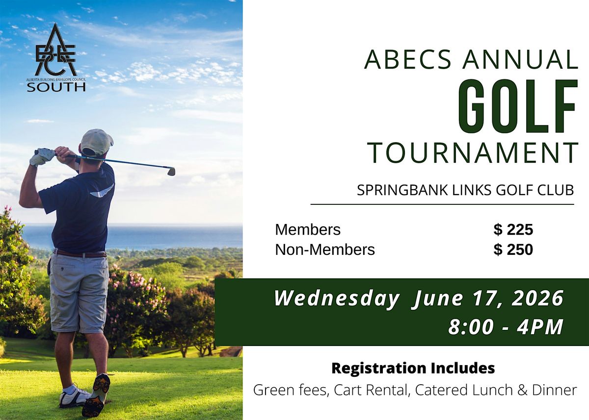 Get ready to tee off at the ABECS Annual Golf Tournament, happening June 17th, 2026, at the stunning Springbank Links Golf Course in Calgary! Join us for a fun-filled day featuring a shot gun start at 8:30am, a delicious hot breakfast to kick things off, and a mouth-watering steak lunch to wrap up the dayWith exciting prizes, great company, and plenty of friendly competition, it's the perfect way to connect and unwind.