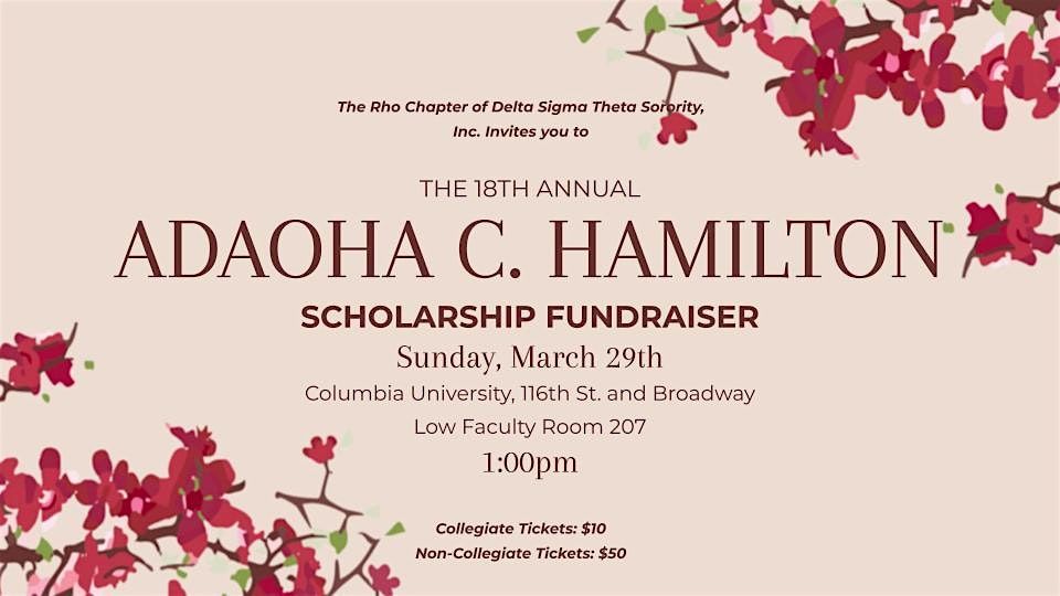 The Adaoha C. Hamilton Scholarship was created by the Rho Chapter of Delta Sigma Theta, Incorporated as a way to celebrate the life of our beloved Soror Adaoha C. Hamilton as well as the talented youth in the New York tri-state area high schools. Each year, Rho Chapter hosts a reception to formally award the scholarship recipient and to celebrate the influence that art has had on our everyday lives.