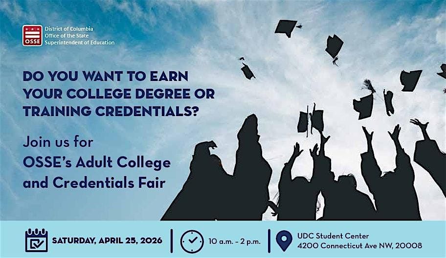 If that’s you, join us for OSSE’s Adult College and Credentials (ACC) Fair on Saturday, April 25, 2026, from 10 a.m. to 2 p.m.