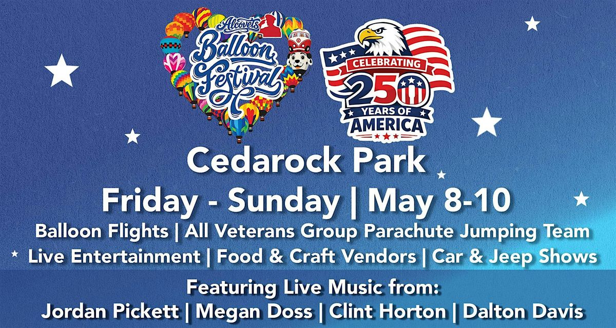The ALCOVETS Balloon Festival returns May 8–10 at Cedarock Park for a full weekend of fun and celebrating 250 years of America’s independence. Enjoy tethered and untethered balloon flights, live music, great food, and family-friendly fun including a KidsZone, 5K race, car and Jeep shows, RC aircraft demonstrations, and amazing police K-9 and parachute demos. Join us in Burlington for an unforgettable weekend that supports our veterans.