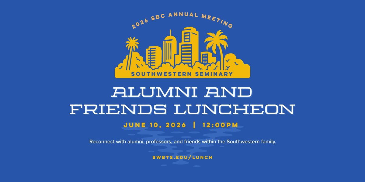 Join faculty, alumni, and friends of Southwestern Seminary for the annual Alumni and Friends Luncheon in Orlando. The free luncheon will include an interview with President David S. Dockery, presentation of new Distinguished Alumni Award recipients, and a three-course plated meal. Every participant will receive a free copy of Dockery's new book, Hearts, Heads, and Hands: A Vision for Theological Education at Southwestern Seminary, published by Seminary Hill Press. Although free, tickets are required. For those who would like to help defray expenses, the seminary welcomes donations.