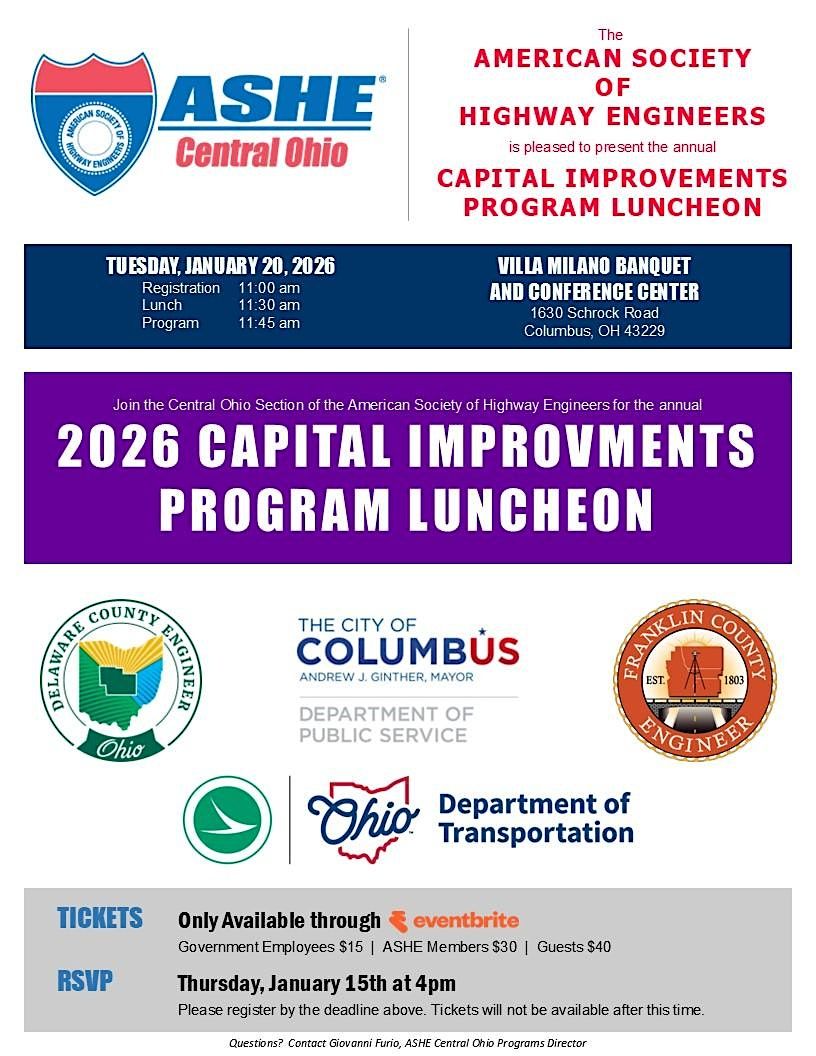 Representatives from the City of Columbus, Delaware and Franklin Counties, and ODOT District 6 will present on their upcoming programs.
