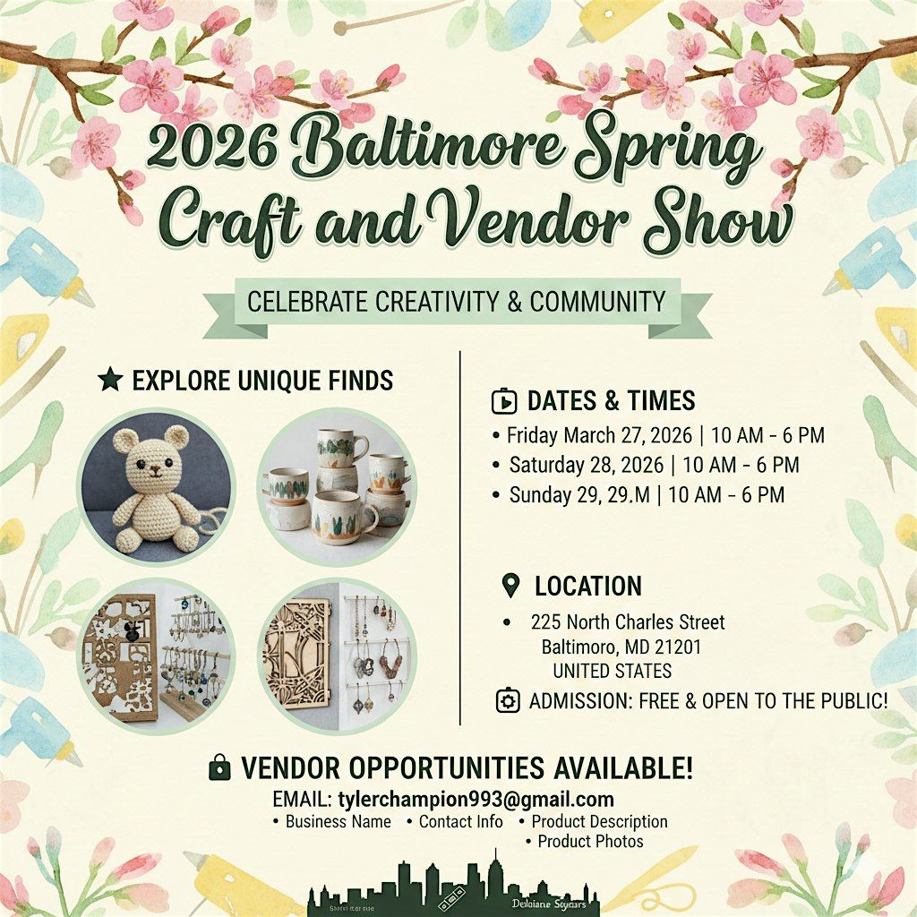 Join us for a weekend of shopping, inspiration, and community at the 2026 Baltimore Spring Craft and Vendor Show—where local talent takes center stage.
