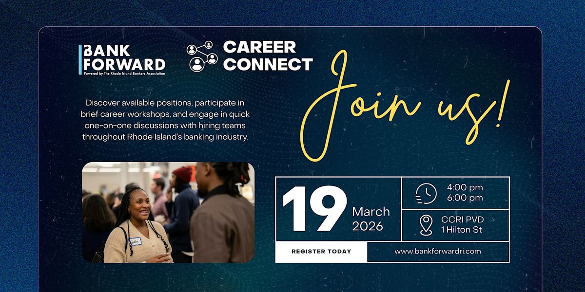 Join us at the Liston Campus - Community College of Rhode Island (CCRI) for an exciting event spotlighting career opportunities in banking! Whether you're exploring your path or a professional ready for a change, this is your chance to connect with industry leaders. Enjoy mini career workshops, prequalifying interviews with hiring managers, and insider tips from banking professionals.