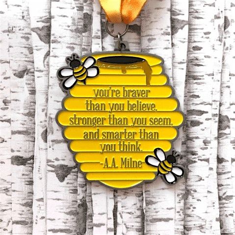 We love to celebrate our favorite bear with our Be Brave 1 Mile, 5K, 10K, 13.1, 26.2. The medal has our favorite quote from A.A. Milne, “Promise me you’ll always remember, you’re braver than you believe, stronger than you seem, and smarter than you think.” We will be donating at least 15% of every registration to Be The Match, “for the thousands of people diagnosed every year with life-threatening blood cancers like leukemia and lymphoma, a cure exists. Over the past 25 years Be The Match ® , operated by the National Marrow Donor Program ® (NMDP), has managed the largest and most diverse marrow registry in the world. We work every day to save lives through transplant.”