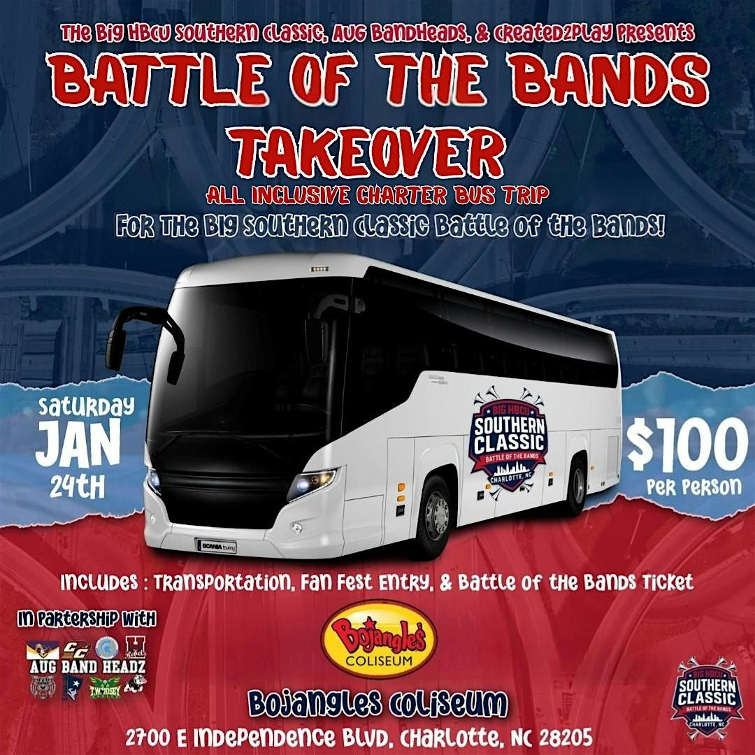 Experience the 2026 BIG HBCU Southern Classic Battle of the Bands like never before with our round-trip charter bus package to one of the most electrifying HBCU events of the year. Sit back, relax, and enjoy the ride as we head south for a full day of tradition, culture, and unmatched Band energy. Connect with fellow fans, soak in the vibes, and let us handle the travel—this is an experience you don’t want to miss!