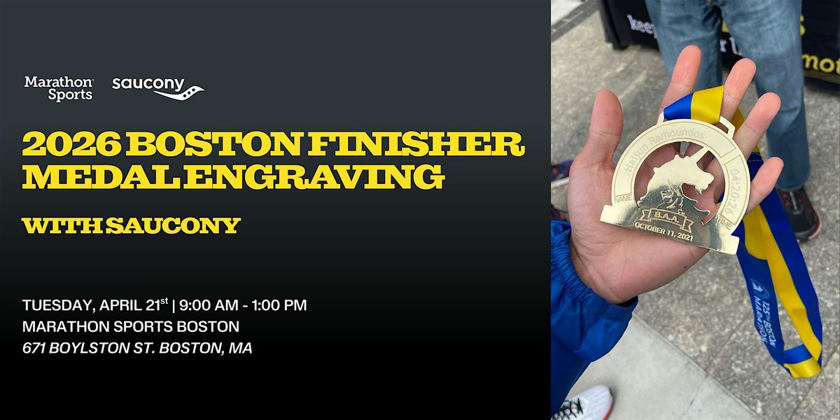 You put in hundreds of miles, logged weeks of training, and made it to the finish—now it’s time to celebrate. Join us at the Marathon Sports Brand House to get your official time engraved on your 2026 Boston Marathon finisher medal with PR Medal Engravers, offered free and sponsored by Saucony. Be sure to arrive early, as the line typically wraps around the block, and engraving is available on a first-come, first-served basis.