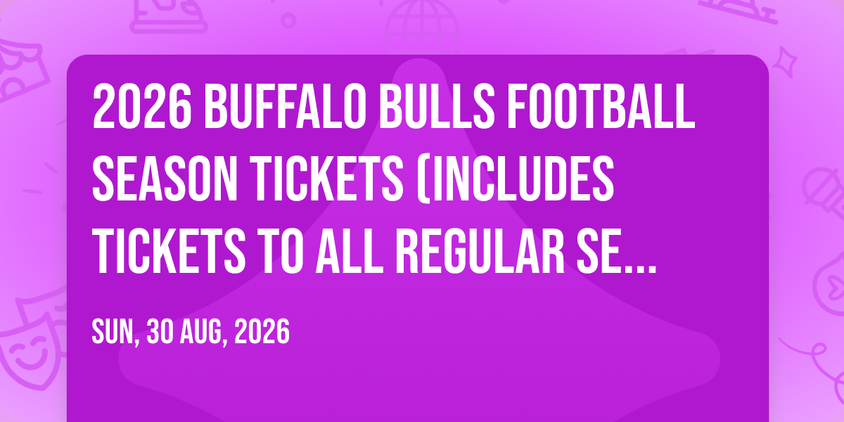 🌟 Be part of history at 2026 Buffalo Bulls Football Season Tickets (Includes Tickets To All Regular Season Home Games), an extraordinary gathering that will captivate your imagination! 🏛️ The prestigious Broadview Stadium in Buffalo, NY sets the stage for an unforgettable experience on August 30th, 2026 at 07:00 PM. ✨ They are bringing together the finest elements of entertainment and innovation to create moments that will take your breath away. From the moment you arrive, you'll be immersed in an atmosphere of wonder and excitement. 🎯 This carefully planned event ensures every guest experiences something truly special. 🎊 Early booking is recommended for this must-attend event of the season!http://maps.seatics.com/UBStadium_Football_2016-12-23_2016-12-23_1549_SVGC_tn.gif