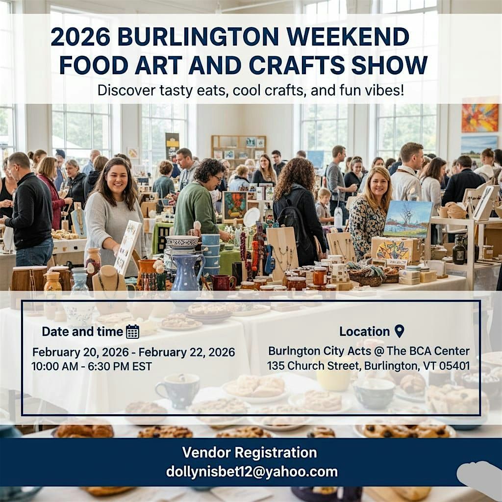 "Discover tasty eats, cool crafts, and fun vibes at the 2026 Burlington Weekend Food Art and Crafts Show!"
