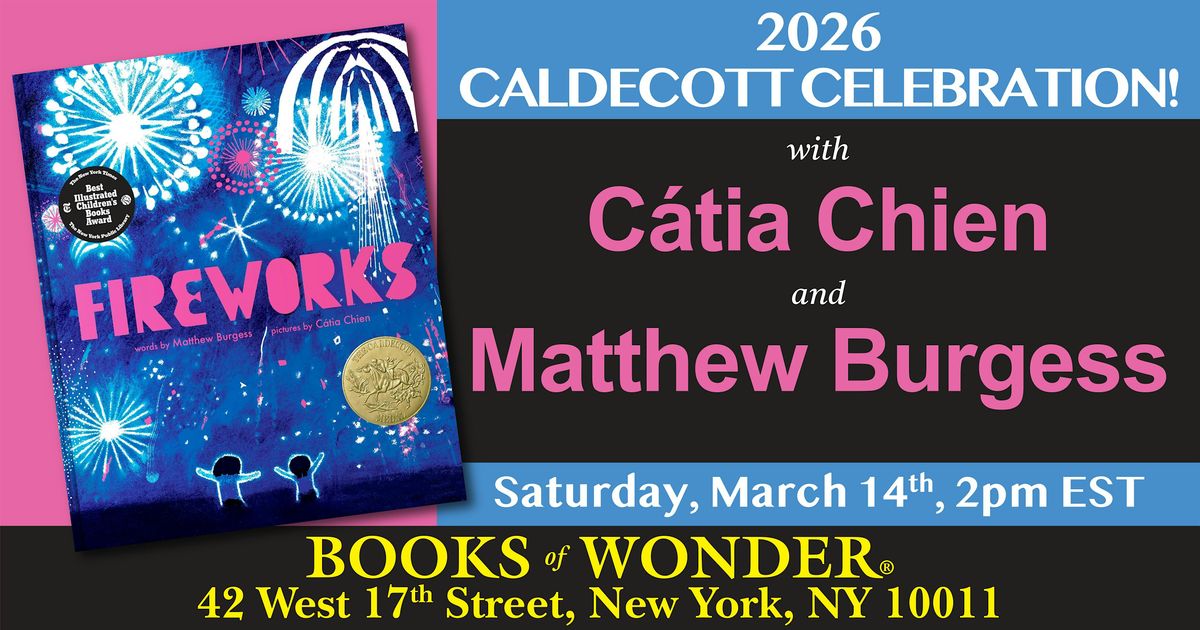 Books of Wonder is proud to host this year’s recipients of the Caldecott Medal, one of the highest honors awarded to brilliantly crafted picture books. Come in and join illustrator CÁTIA CHIEN and author MATTHEW BURGESS for a celebration of the 2026 Caldecott Medal book, ! You won’t want to miss the chance to meet, greet, and congratulate this wonderful duo!