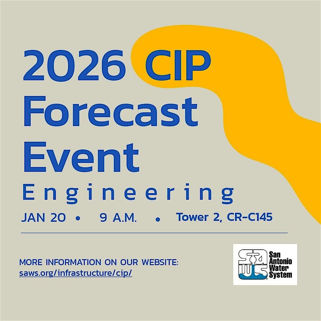 Join us for the 2026 Capital Improvement Program (CIP) Forecast for Engineering Design at San Antonio Water System. This is the largest networking event of the year, and we are excited to offer in-person and virtual attendance options. This is a unique opportunity to network with prime consultants, subconsultants, and our leadership team members. Bring your capability statements and business cards, and be ready to explore upcoming 2026 projects. Light refreshments will be served, so come connect with our community and support our water infrastructure. Register now and be part of this exciting event!