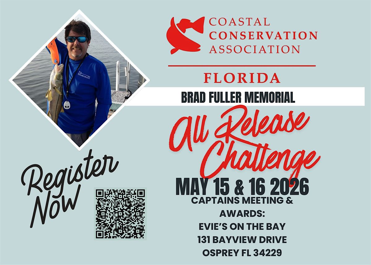 Join us for the 2026 CCA Sarasota Brad Fuller Memorial All-Release Tournament! This premier catch-and-release event honors the legacy of Brad Fuller, an avid angler and dedicated conservationist, by bringing together fishing enthusiasts to celebrate sportsmanship, stewardship, and coastal conservation.