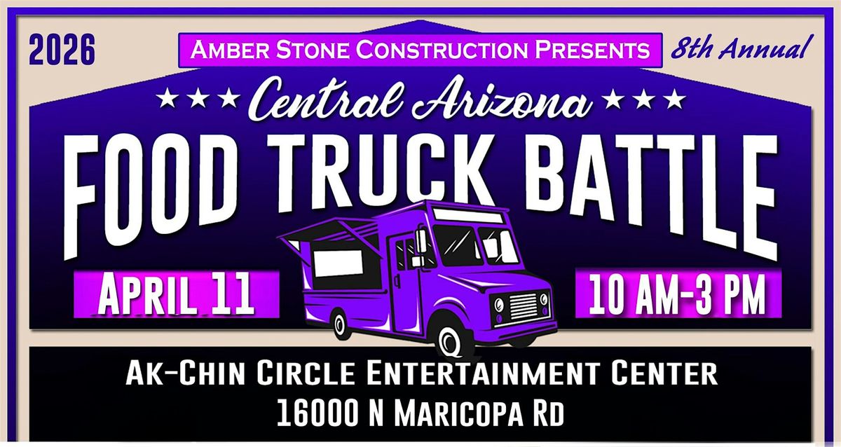Join us April 11, 2026 at Ak-Chin Circle Entertainment Center, next to Harrah's Ak-Chin Casino. This event will feature 20 trucks "competing" for Judge's Choice and People's Choice Trophies. The 2026 Biz Expo will be running in conjunction with the Food Truck Battle. Competition portion of the event will end at 3:00PM.