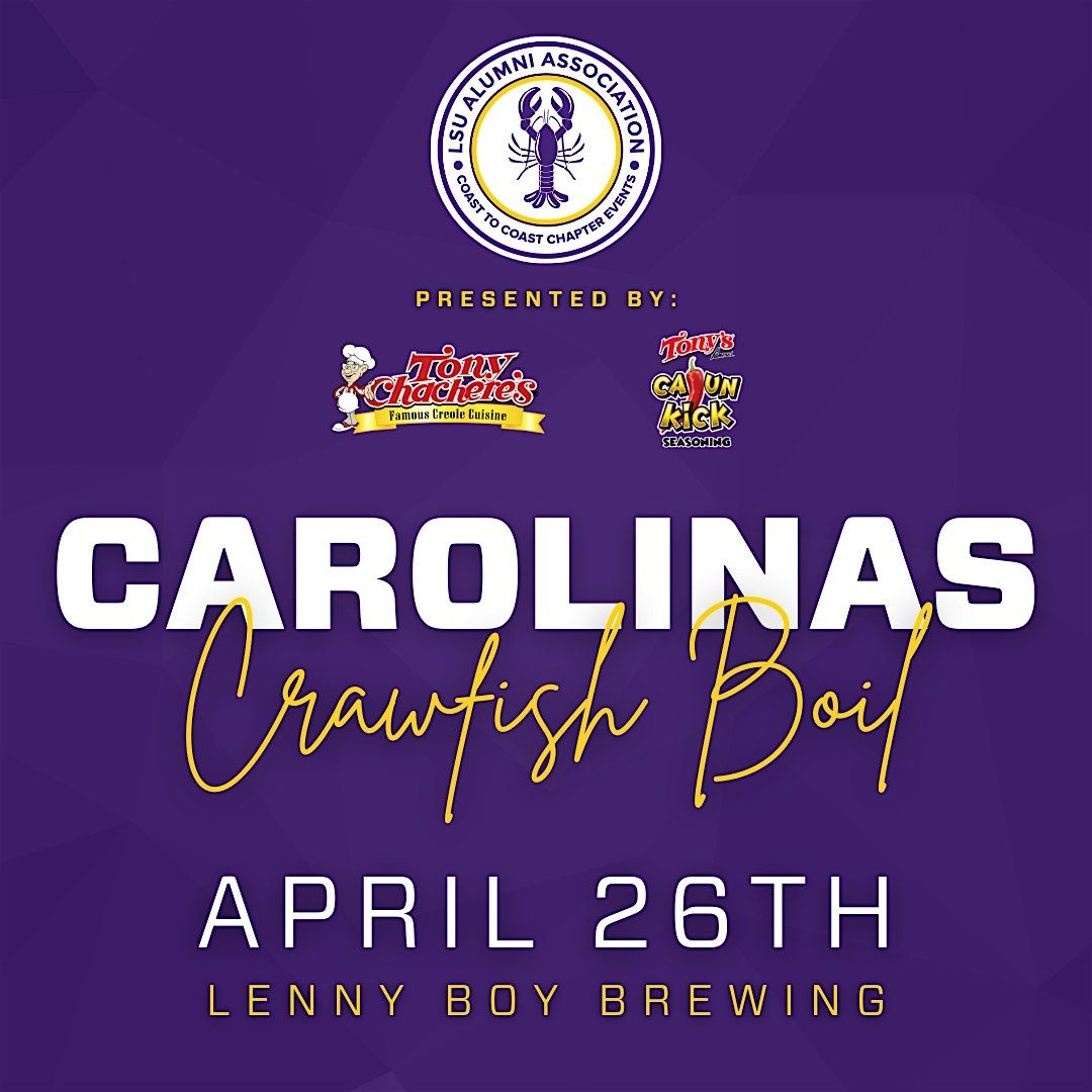The LSU Carolinas Charity Crawfish Boil is raising money for the LSU Carolinas Alumni Scholarship fund! Join us at Lenny Boy Brewing.