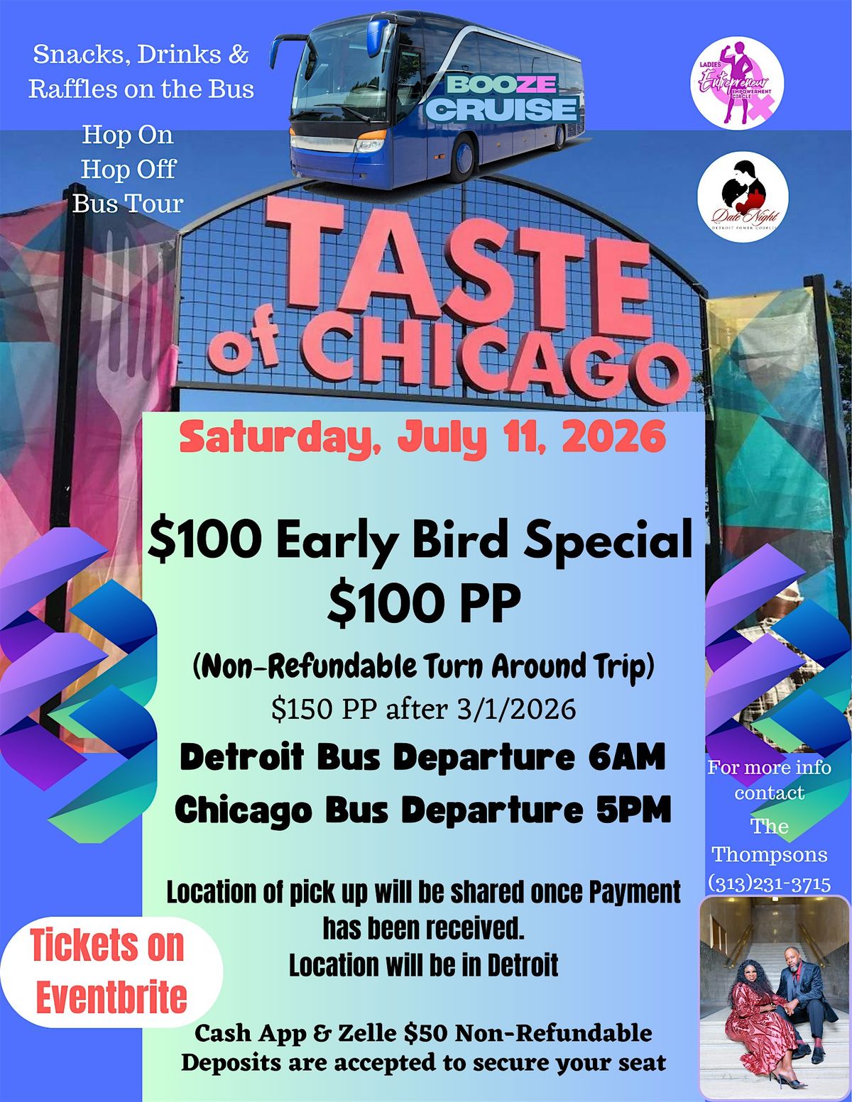 Join us for an exciting adventure aboard the Chicago Taste Fest Booze Cruise! Indulge in delectable treats and refreshing beverages as we glide along the stunning Chicago skyline. π This in-person event guarantees a day filled with culinary delights, libations, and a fantastic atmosphere. Immerse yourself in the vibrant flavors of Chicago while taking in breathtaking views from the water. π Secure your tickets today for an unforgettable, spirited journey!